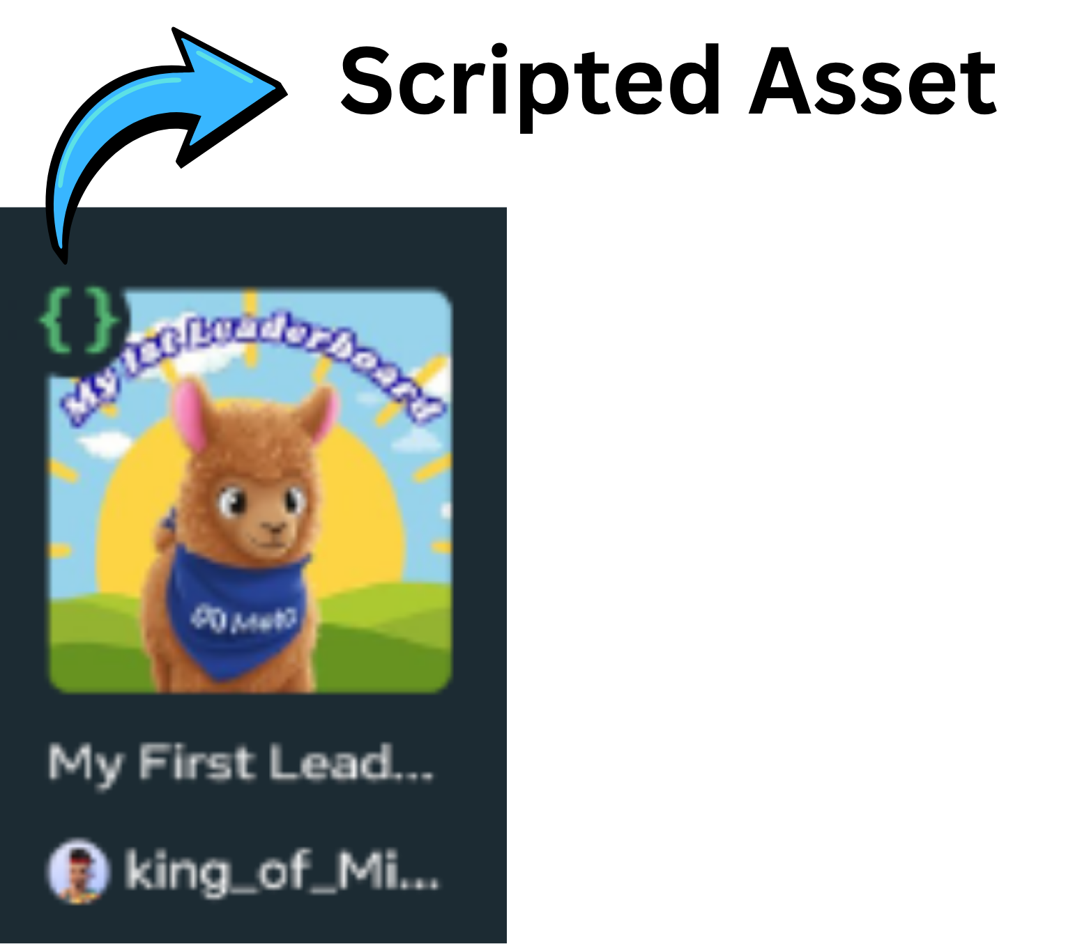 Some assets include full mechanics with 3D models, Custom UIs and scripting. These assets can be identified by the green curly braces that appear at the upper left corner of the thumbnail.