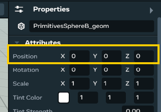 - With the shape still selected, go to the properties (right panel), and change its positon to x: 0, y: 0, z: 0