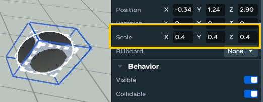 - Adjust the Scale to x:0.4, y:0.4, z:0.4