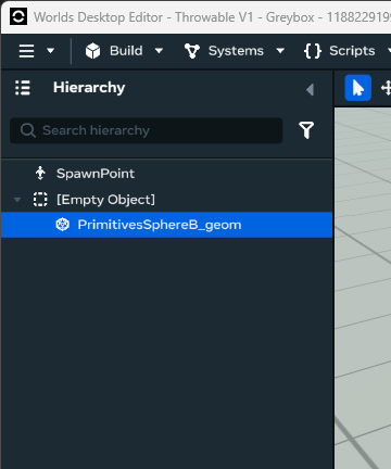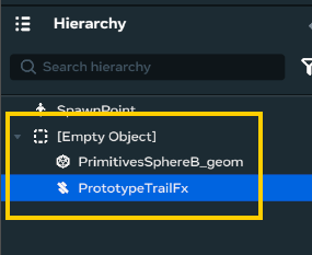 - This will add a container where we can place all the items that you want to include in the throwable, like visual effects and meshes